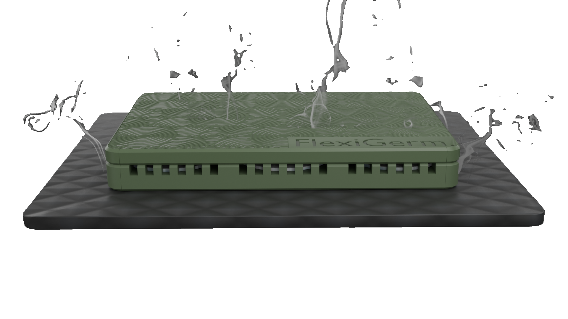 FlexiGerm. is 20cm x 13.5cm x 2.3cm