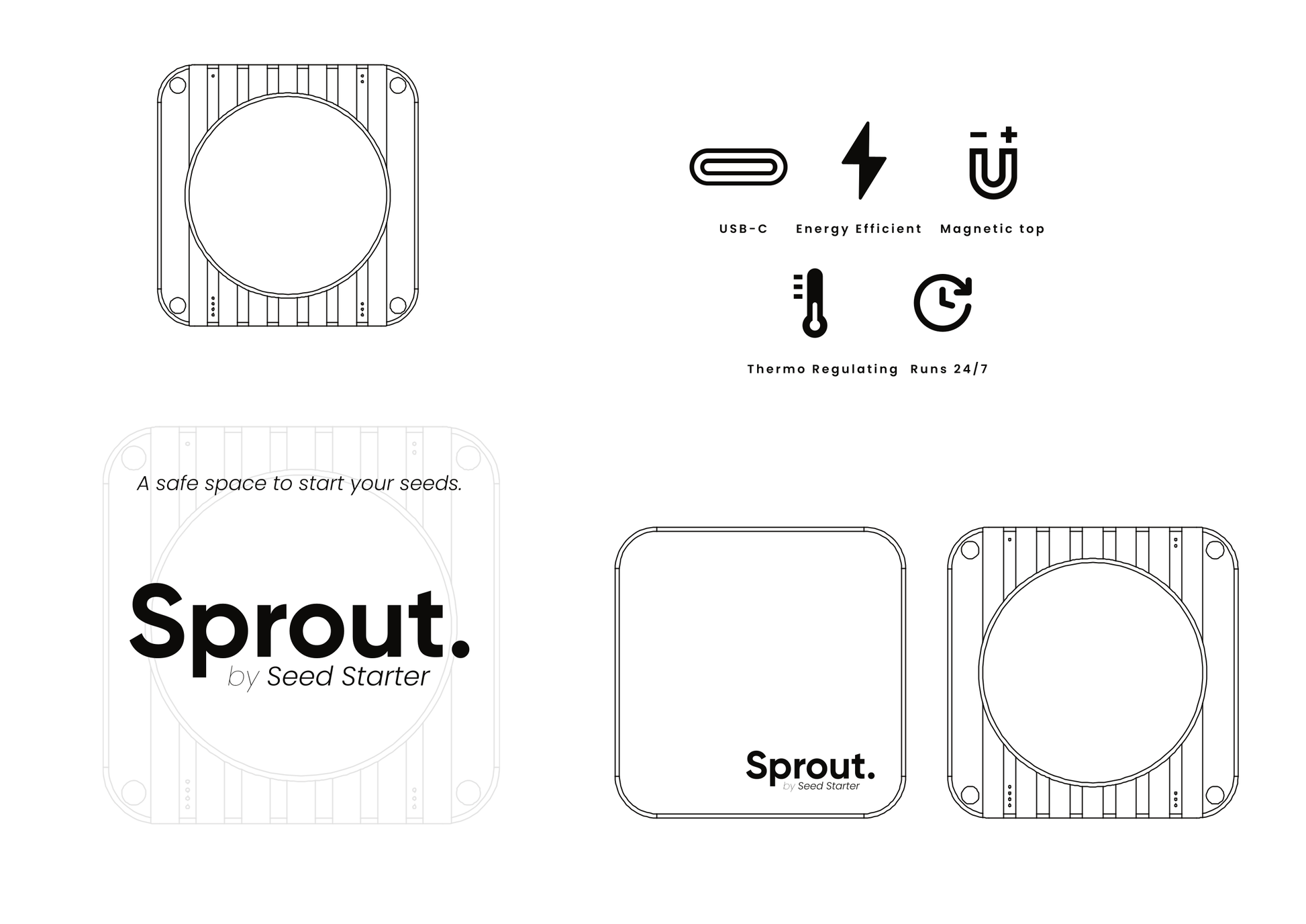 Setup: Place the Sprout unit on a flat surface and connect it to a power source using the USB-C cable.